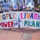 Watertown Faces Climate Change (WFCC) joined the Climate Contingent at the No Kings III protest in Boston on Saturday, March 28th, 2026. After attending the No Kings Stand Out in Watertown Square dozens of Watertown residents and members of Watertown Faces Climate Change took the 504 Express bus to Copley Square where they joined 100s of members of other climate groups including 350 Mass, Extinction Rebellion Boston, Elders Climate Action, Mothers Out Front, Sierra Club of Massachusetts, Sunrise Boston, Third Act!, Beyond Plastics Greater Boston, and many more.