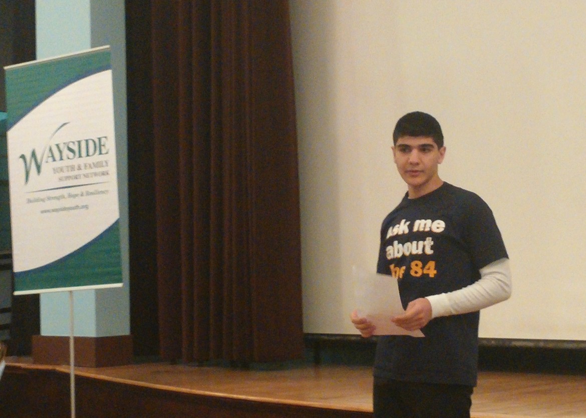 Watertown Youth Coalition Peer Leader Chris, a Watertown High School student, spoke at the WYC annual meeting.