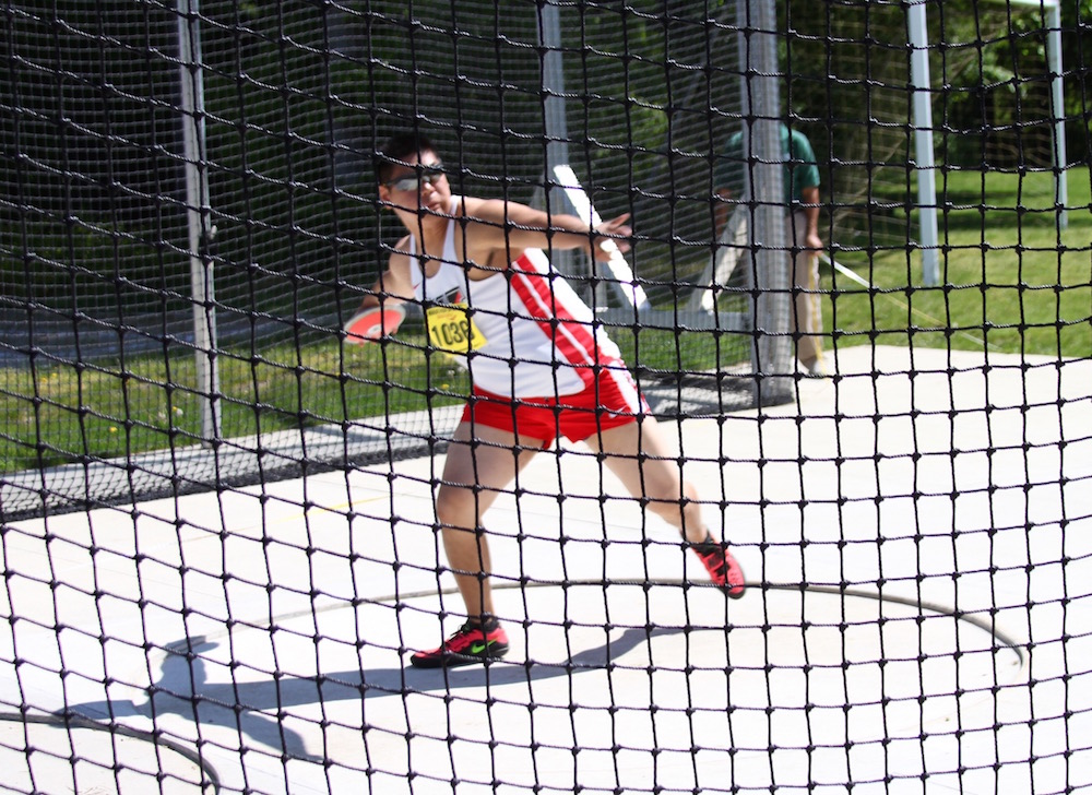 Watertown’s Joe Chau hurls the discus in the Div. 4 Track and Field Championships at Norwell High School.