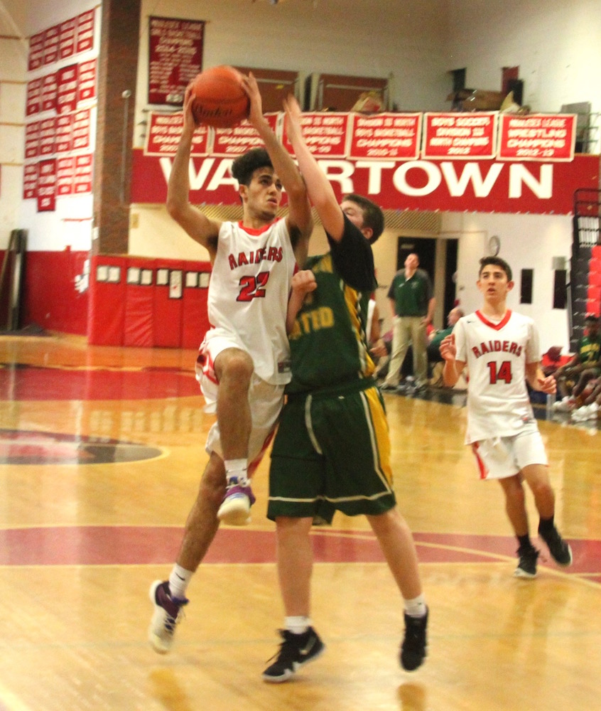 Watertown senior guard Julio Fulcar added a dozen points in the victory over Boston United at WHS.
