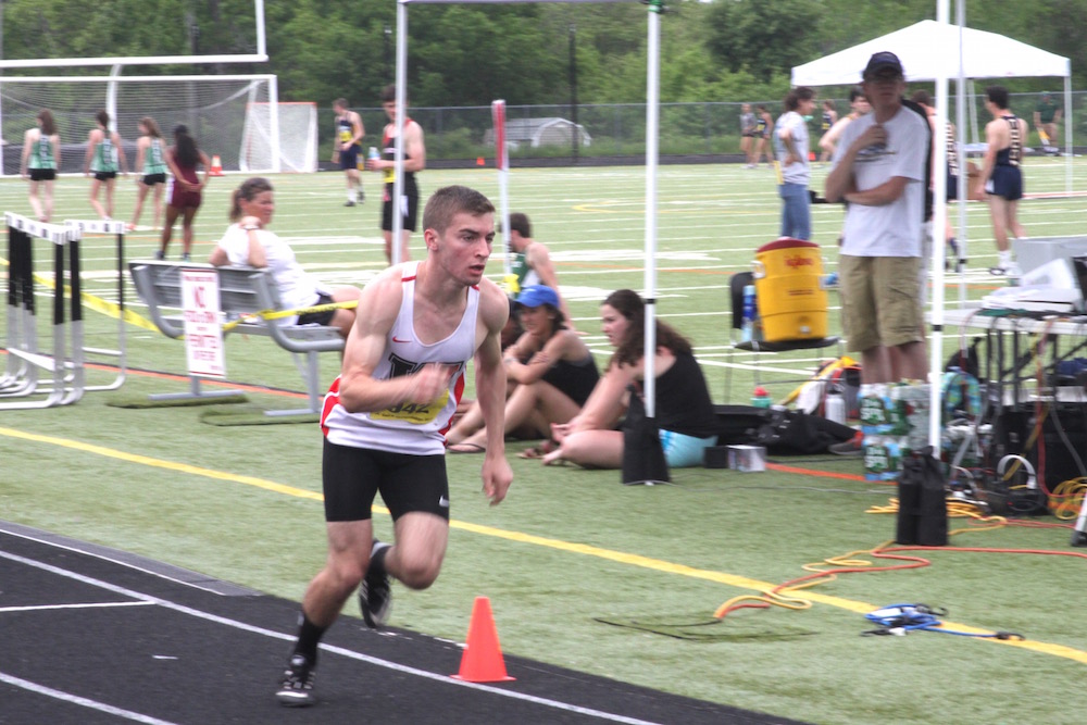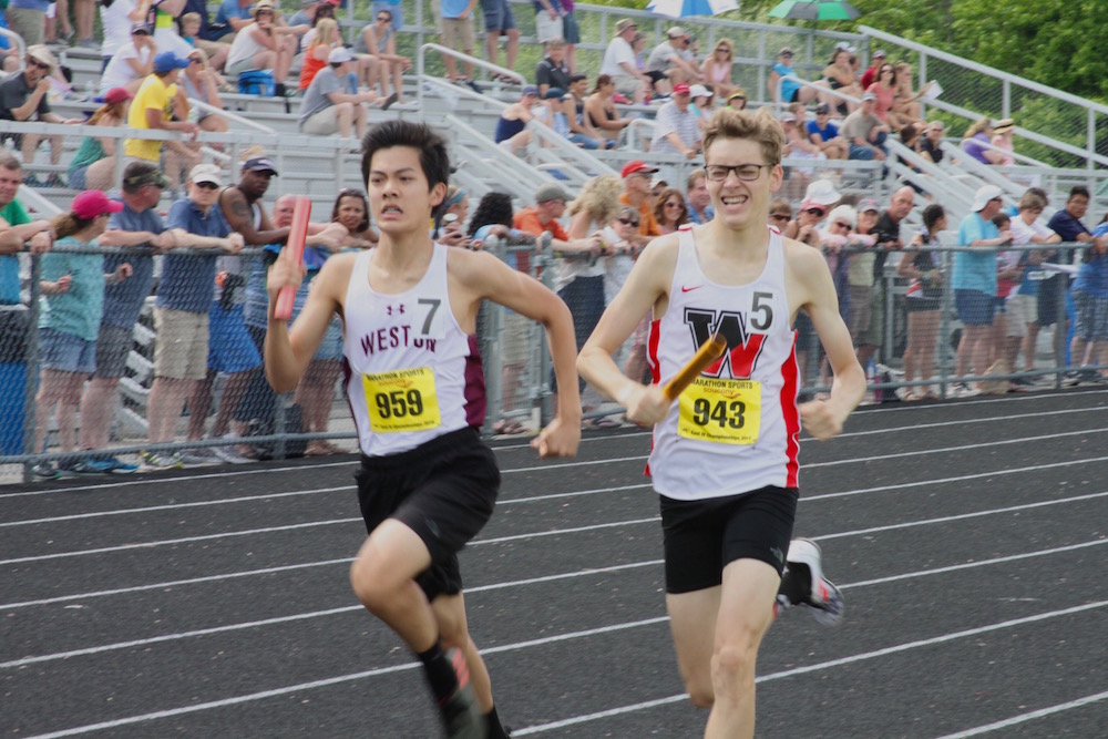Senior Gus Brouiliard, anchor of Watertown’s 4 x 800 relay, eventually passed the Weston runner to finish second at the Div. 4 Meet.