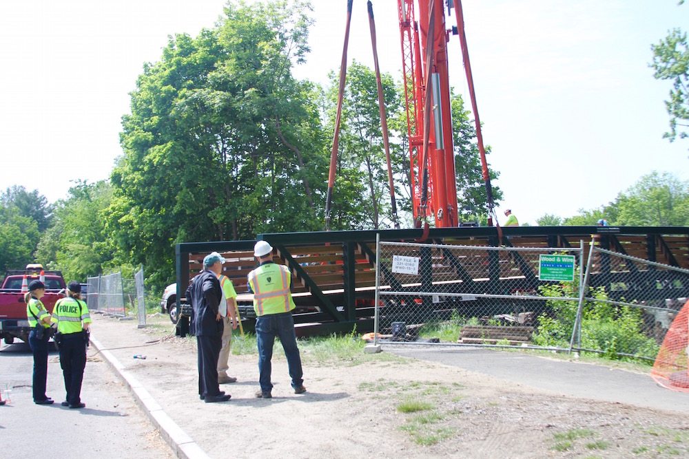 Department of Conservation and Recreation Commissioner Leo Roy visited the construction site Wednesday afternoon as workers prepared the bridge to be lifted into place on Thursday morning.