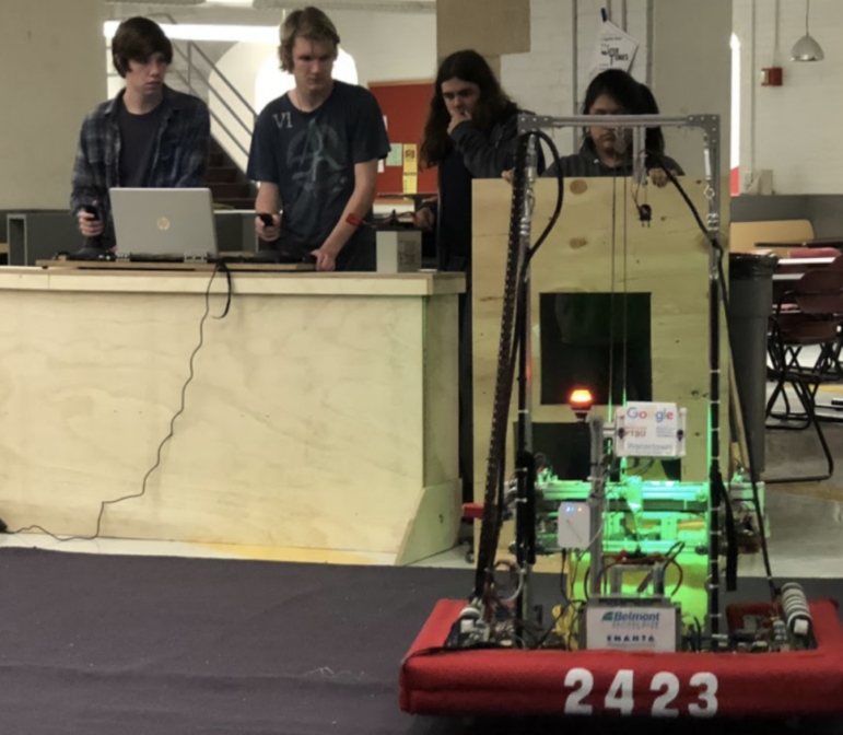 Students, mentors and alums will divide into three member drive teams to see how many laps they can drive a robot around the course on the basketball court, including traversing obstacles during a five minute time period.