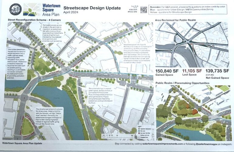 Present at the meeting will be both the City Council and the Planning Board, said City Council President Mark Sideris. He said it may be the first of multiple meetings on the Watertown Square Area Plan, which includes not only the redesign of the main intersection, but also where the City will allow housing to be built by right to meet the requirements of the MTBA Communities Law, as well as form-based zoning which will determine how future developments will look.