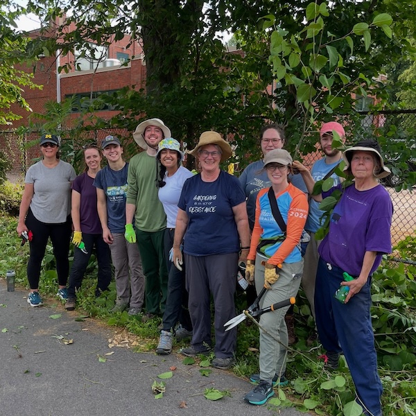 If you are interested in helping with this Greenway project, the team would love to meet you. Signing up for a volunteer event is a great way to see the work firsthand and get your hands dirty. Events include trash pickups, cutting/pulling/digging out invasive plants, weeding, and planting native plants. You can also contact the team by emailing greenway@watertowngardens.org with your ideas and questions.