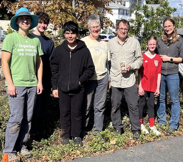 The Watertown-Cambridge Greenway is a treasured ribbon of green space that connects School Street in east Watertown to Fresh Pond Reservation in Cambridge. The path is a rail trail converted from the former B&M Railroad’s Watertown Branch, now owned by the State of Massachusetts’ Department of Conservation and Recreation (DCR). It is frequented by commuters, dog walkers, and bicyclists every day of the week. Unfortunately, since the path’s construction, many of the shrubs, trees, and perennial flowers that were originally planted have been overcome by invasive plants.