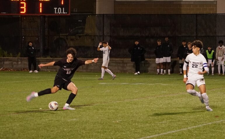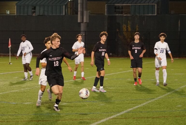 Election Day turned into a landslide for Watertown Boys Soccer in their return to tournament play for the first time since 2019, with an impressive 3-0 blanking of St.Mary’s of Lynn.