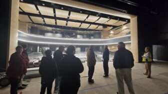 A wide expanse of gym space, a theater that features a main stage and a black box theater, a two story media center, and large classrooms are some of the highlights of the new Watertown High School building that is about six months away from opening. School and City officials and employees toured the construction … Continue reading New High School Building Taking Shape, Featuring Larger Gym, Theater & Classroom Spaces