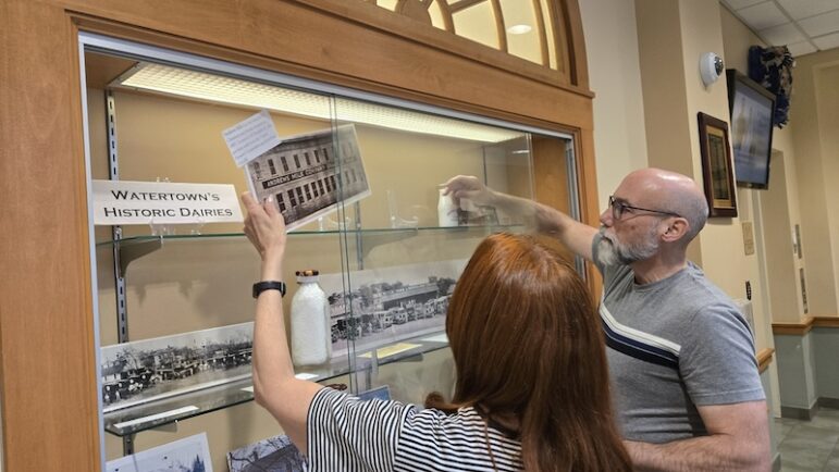 A few months ago, the Historical Society of Watertown was contacted by a couple of the police officers in Watertown. They wondered if we would be interested in partnering with them and installing an exhibit in one of the display cases in the police station lobby. We said “Yes – we would love to partner with you!”