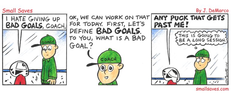 Combining this with the love of cartooning Small Saves emerged in 1991 and took on a life of his own. “To play goal – then come home and draw Small Saves — is my ideal definition of a good day.”