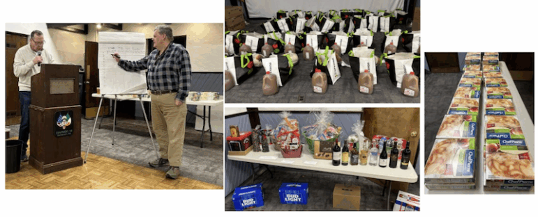 During the Turkey Shoot 40 Turkeys, 40 Bags of Vegetables, 40 Pies, and 40 Gallons of Cider will be raffled off.