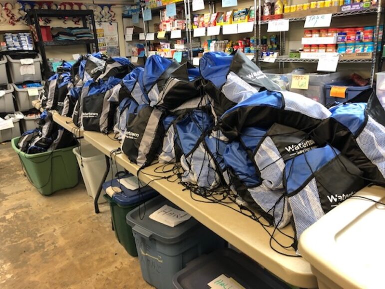 Recently employees from Watertown Savings Bank helped out at Operation American Soldier, and filled backpacks to send to American servicemen and women.