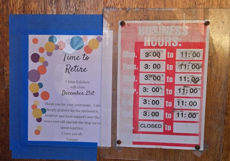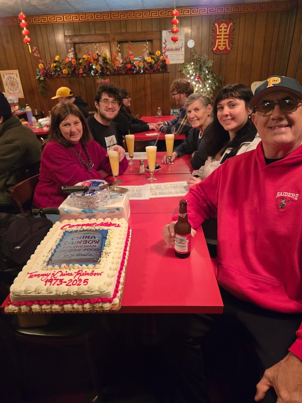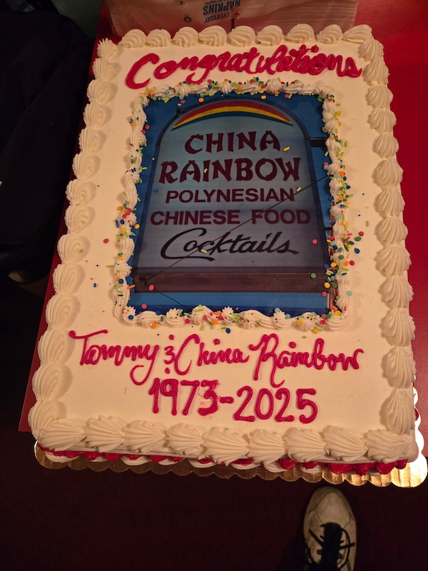 On Friday, the restaurant’s second to last day, loyal customers toasted the China Rainbow staff, and presented Tammy with a cake. Peter Centola, who has been frequenting China Rainbow for many years, provided photos from the celebration.
