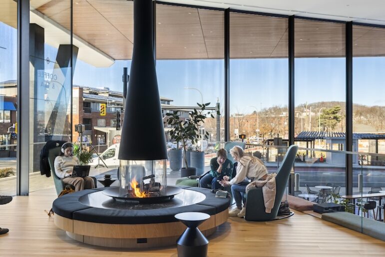 With existing locations in Boston and Washington, D.C., Triangle Co is known for its specialty, in-house coffee, teas and made-to-order food offerings. Now, it will bring an experience to the heart of Watertown that is unique from other café locations around the city. Patrons will enjoy a soaring mid-century inspired 360-degree fireplace and café seating, creating an updated yet welcoming place to focus on remote work, meet with colleagues, or stop in to relax with a specialized food or drink offering.