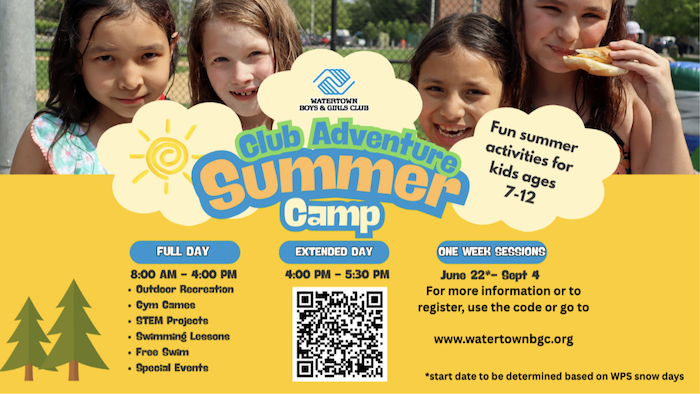 Watertown Boys & Girls Club is delighted to announce that registration is now open for its 2026 Club Adventure Summer Camp, a full-day summer camp program providing fun, safe, and enriching programming for youth ages 7–12 years.