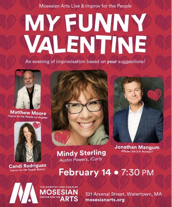 Acclaimed comedian and actress Mindy Sterling takes the stage for My Funny Valentine on Saturday, February 14, 2026 at 7:30 PM, in the intimate Dinah Lane Theater at the Mosesian Center for the Arts, 321 Arsenal Street, Watertown, MA.