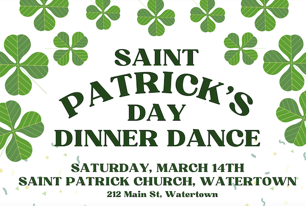 St. Patrick’s Church will be hosting a St. Patrick’s Day Dinner Dance on Saturday, March 14. See information provided by the church, below.