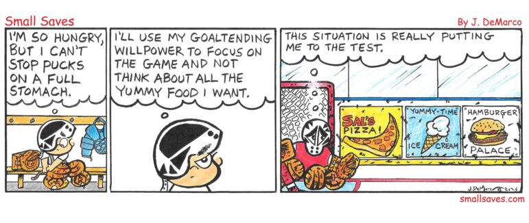 Cartoon: Small Saves Has Something Besides Hockey on His Mind