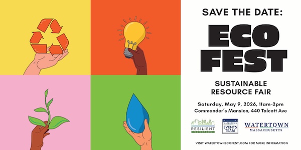 Save the date for Eco Fest, Watertown’s second annual sustainable resource fair: Saturday, May 9, 2026, from 11 a.m. to 2 p.m. at the Commander’s Mansion, located at 440 Talcott Ave. Eco Fest is a family-friendly event where our community can access a variety of programs and resources available to make their homes and lives more sustainable.