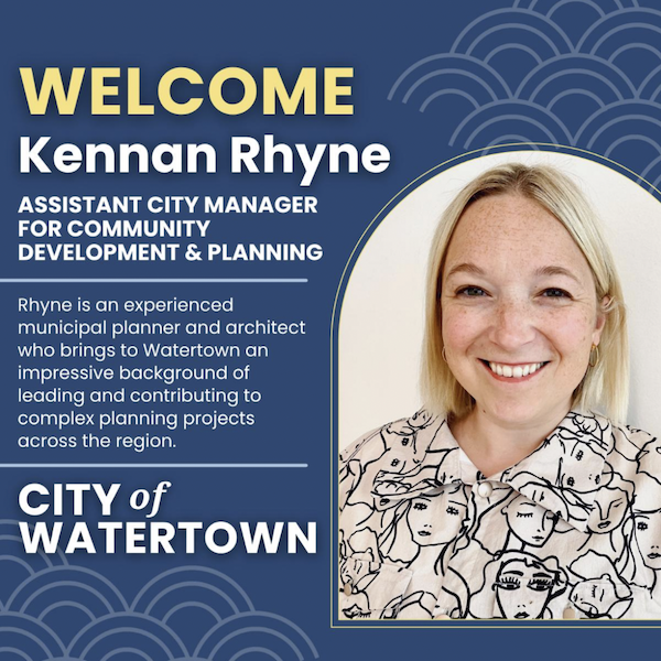 “Kennan Rhyne is a leader and an innovative thinker when it comes to developing and planning communities. I can’t wait to work closely with her on my leadership team as we continue to carry out the vision for Watertown in our comprehensive plan,” said City Manager Proakis. “Her creativity and commitment to community engagement are going to be immensely important as we move forward with some of the large-scale planning initiatives in Watertown over the next several years.”