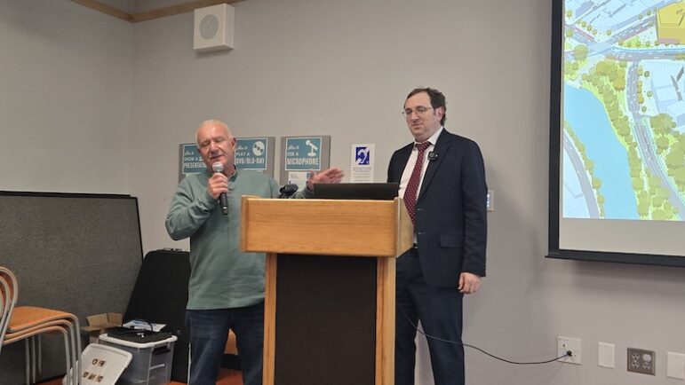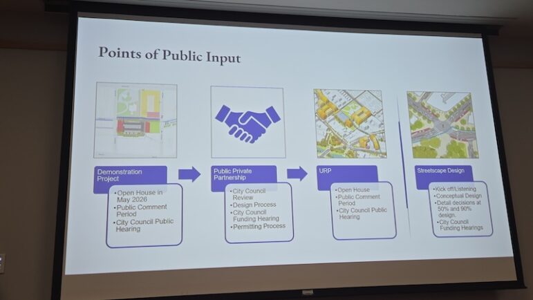 “I stopped because what I wanted to do is I wanted to get out of this public meeting, introduce this idea to the public and make sure that everybody knows what’s going on,” Proakis said. “Because at the end of the day, these are decisions that should be made in light of the public, with everybody understanding what’s going on. There is no signed agreement with the developer, the City administration, the Council is committed to nothing yet. We’re here to propose an idea, but the benefits of the partnership include coordinating infrastructure solutions, faster project completion, shared risks that I think will reduce risk overall, and a project that will be more affordable to both sides.”