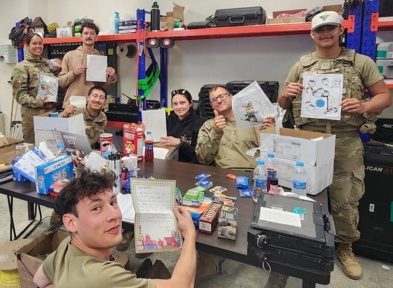 As promised, I’ve attached some photos! Some of our personnel have moved on from here, so we took the liberty of sharing some of the boxes with our USAF neighbors, the members of the 495th Fighter Squadron “VALKYRIES” I can tell you the joy was exactly the same for them.