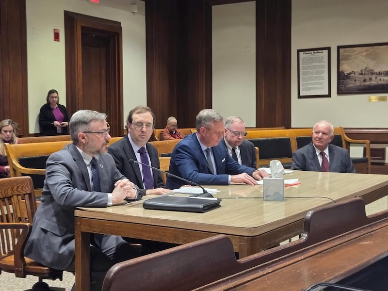 Watertown City and State officials appeared before a joint committee at the State House on Jan. 27, 2026. Pictured, from left, Steve Owens, George Proakis, John Lawn, Earl Smith, and Mark Sideris. City officials from Watertown joined state representatives on Beacon Hill to request an extension to a bill that allowed Watertown to shift more of the property tax burden from residential properties to commercial properties. The shift would allow a 50/50 split, instead of the current requirements of state law to have 61 percent of the tax levy coming from residential properties.