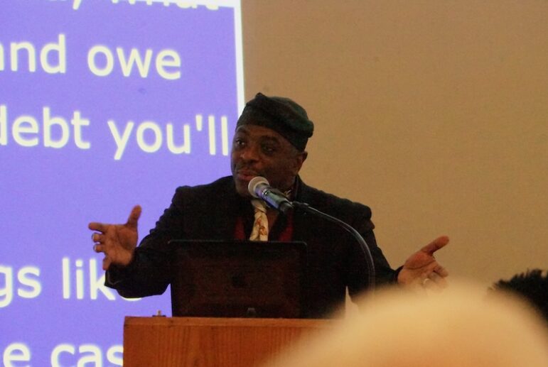 Massachusetts Poet Laureate Regie Gibson recited several of his poems at the 2026 Unity Breakfast. (Photo by Charlie Breitrose)