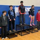 Watertown senior Fahad Kahn, on the top step, won the 106 pound class MIAA Div. 3 North Sectional Meet for the second year in a row. (Watertown Athletics)