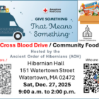 The American Red Cross and the Watertown Ancient Order of Hibernians will hold the final blood drive of the year at Hibernian Hall on Dec. 27. The event is also a food drive for the Watertown Catholic Collaborative Food Pantry.